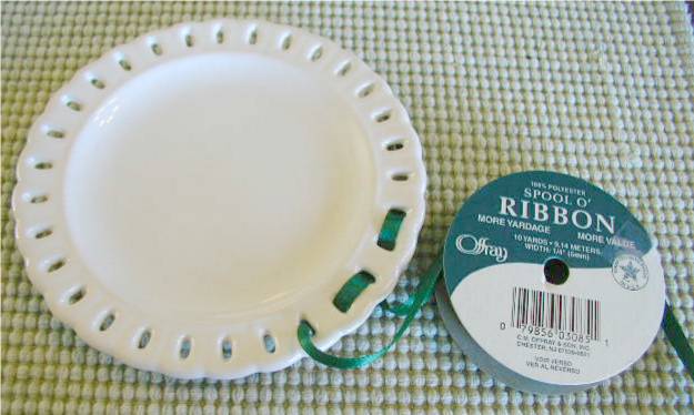 Feeling extremely lazy on this particular day, I did the obvious and just laced a green ribbon through the rim of it.