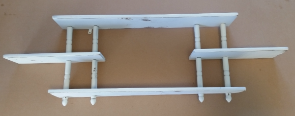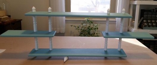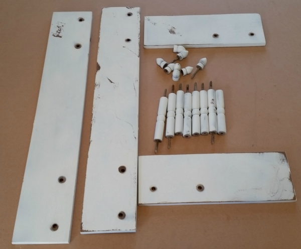 This shelf was going up on a white wall in my bathroom so I decided to give it a little paint. When I disassembled it, I realized that there were a lot of little parts to this shelf.