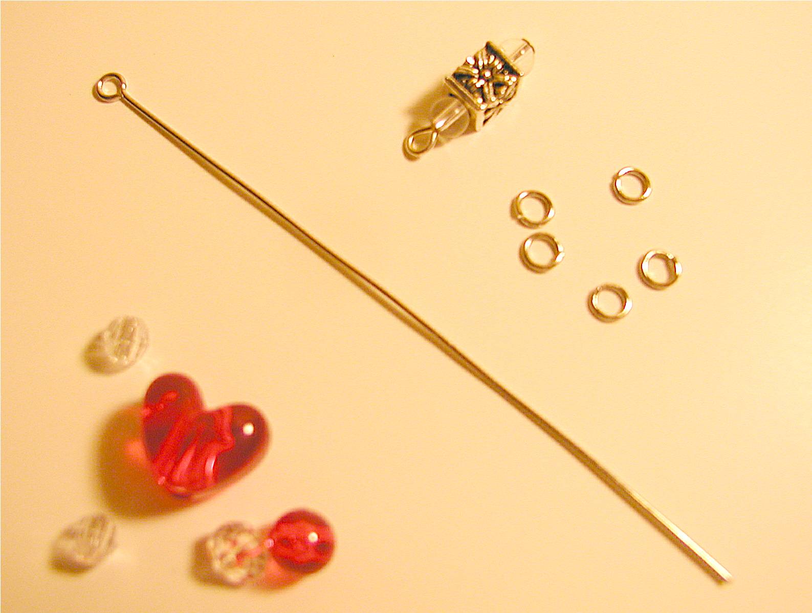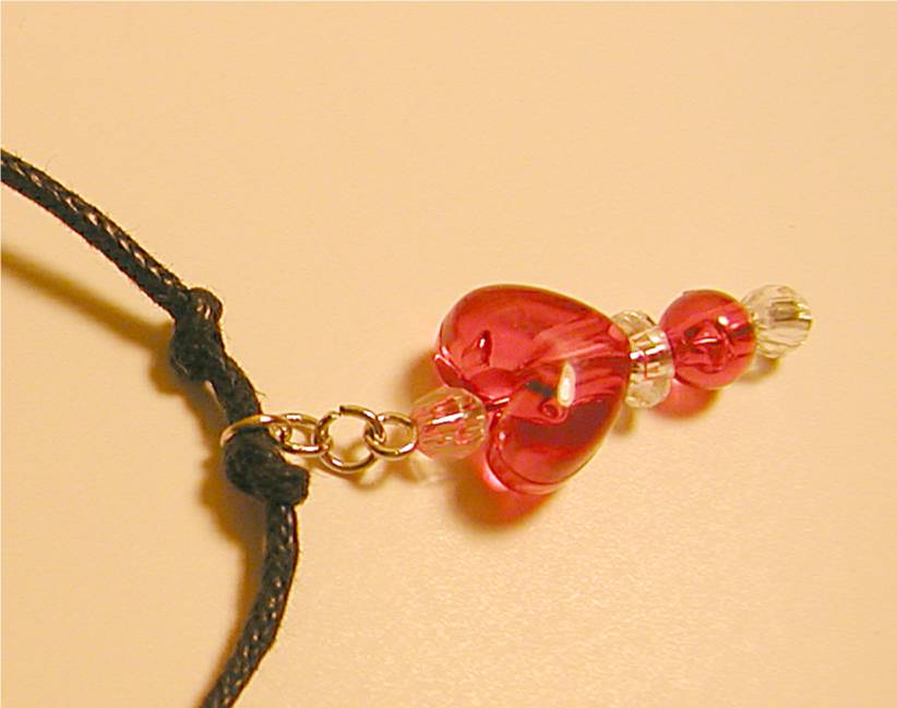 Then I made a chain with just 2 jump rings, fastened them to the charm and attached it to the second jump ring on the heart chain.