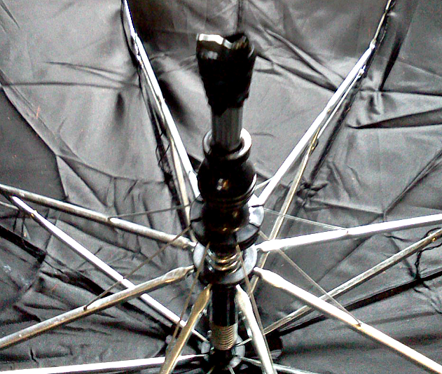You need an umbrella. Mine came from the Dollar Store. Open the umbrella and snip off the handle as close as you can just under the little catch that keeps it open. I used some bolt cutters, but it was serious overkill...the handle is very thin and you could do it with wire snips. Now wrap up that cut end with some electrical tape or duct tape because if you don't, you will cut yourself on that sharp end and you might say some swears.